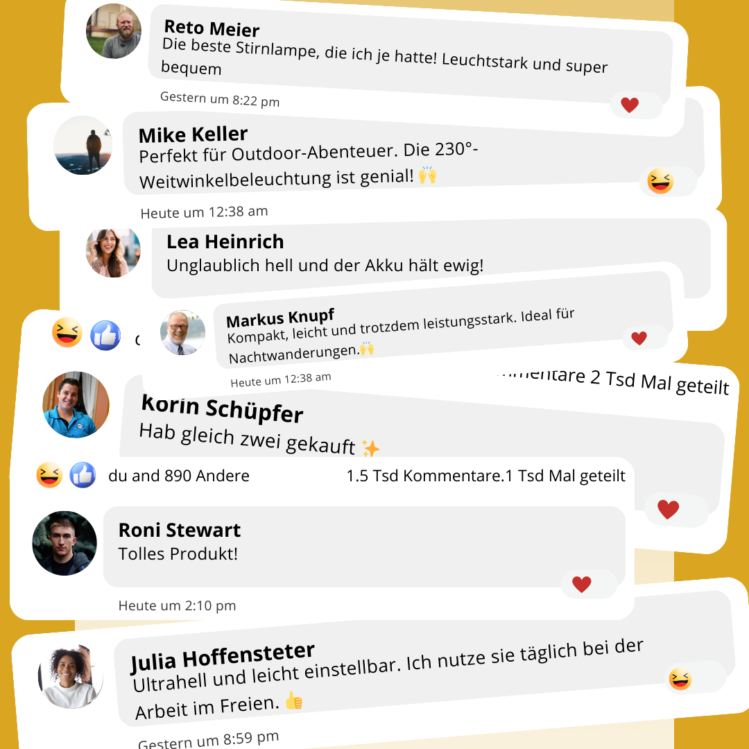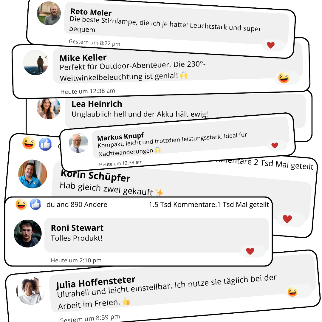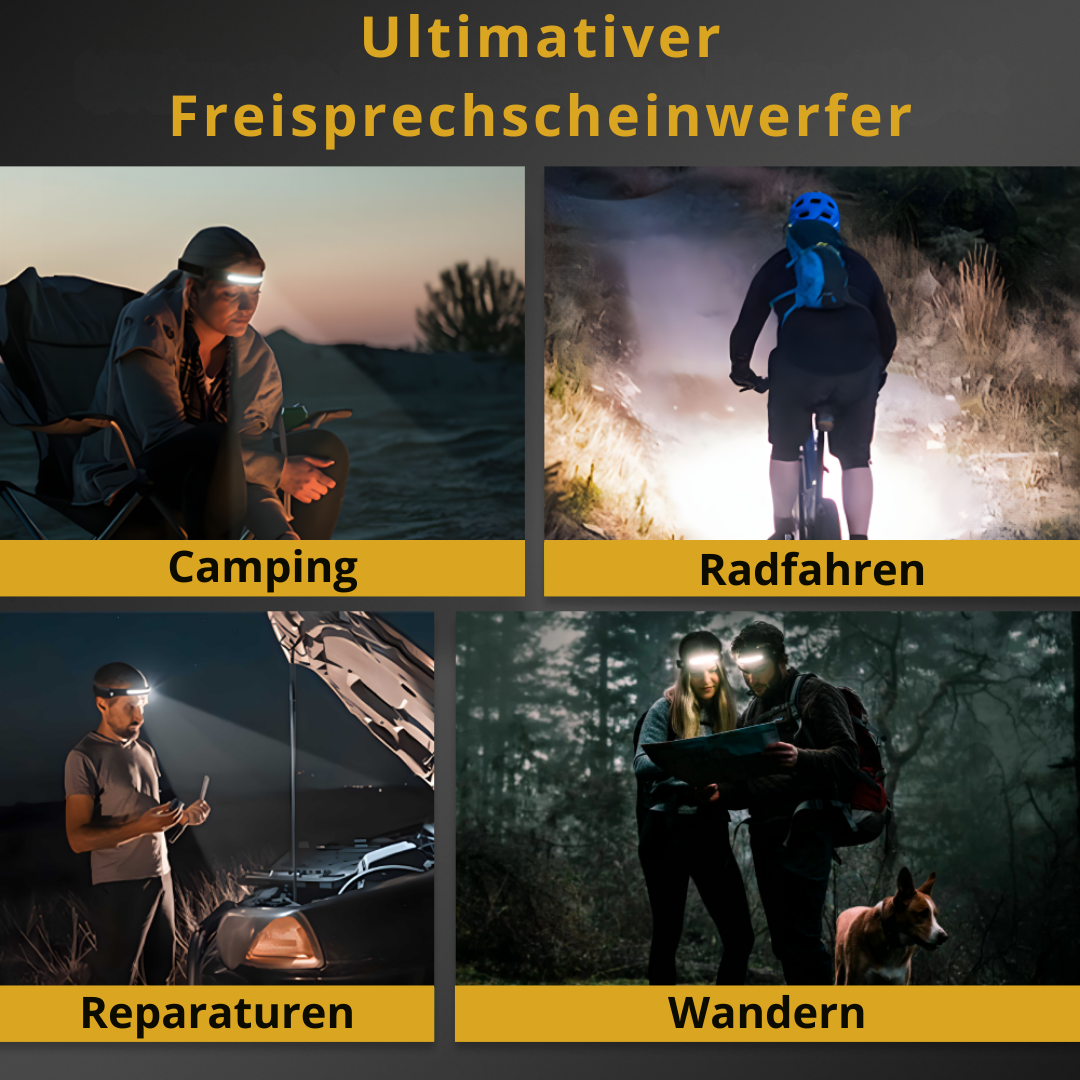 Das verstellbare Stirnband passt sich jedem Kopf an – auch Helmen. So sitzt die Lampe sicher und angenehm, egal ob beim Sport, der Arbeit oder beim Abenteuer.