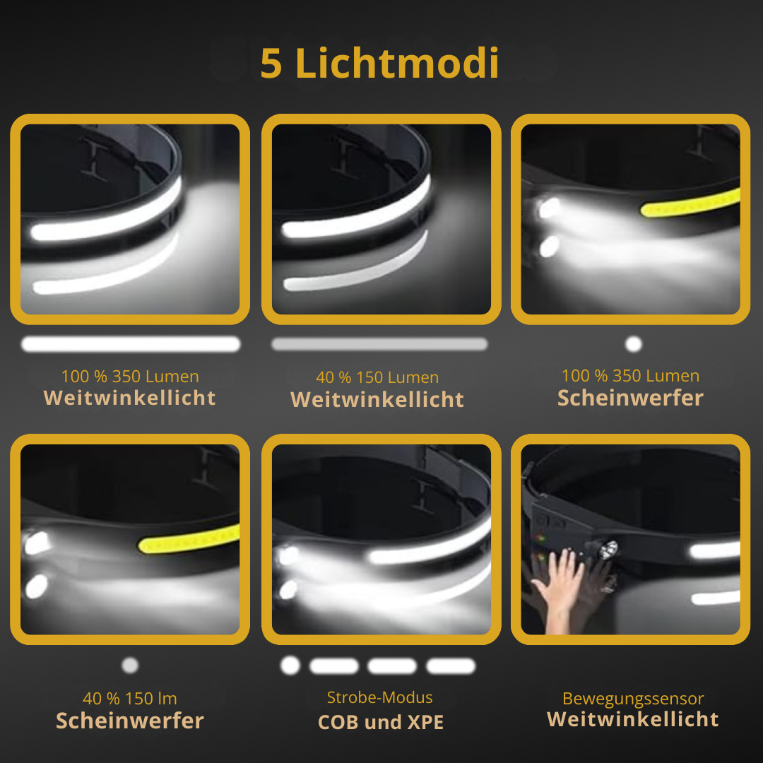 BrightBeam ist eine moderne Stirnlampe mit einem weiten 230 Grad Lichtwinkel, die deine Umgebung hell ausleuchtet und dir freie Hände lässt. Dank der innovativen Gestensteuerung kannst du sie spielend leicht bedienen, ohne einen Schalter zu suchen. Mit dem langlebigen 1200 mAh Akku und schnellen USB-C Ladefunktion bist du mehrere Stunden unabhängig von Steckdosen. Fünf verschiedene Lichtmodi passen sich deinen Bedürfnissen an – vom sanften Licht bis zum Warnblitz. Durch den Spritzwasserschutz IPX4 ist BrightBeam sicher bei jedem Wetter und dank des verstellbaren Stirnbandes komfortabel tragebar, auch über Helmen. Ob im Outdoor-Einsatz, beim Heimwerken oder im Alltag, BrightBeam ist dein zuverlässiger Begleiter für jede Situation.
