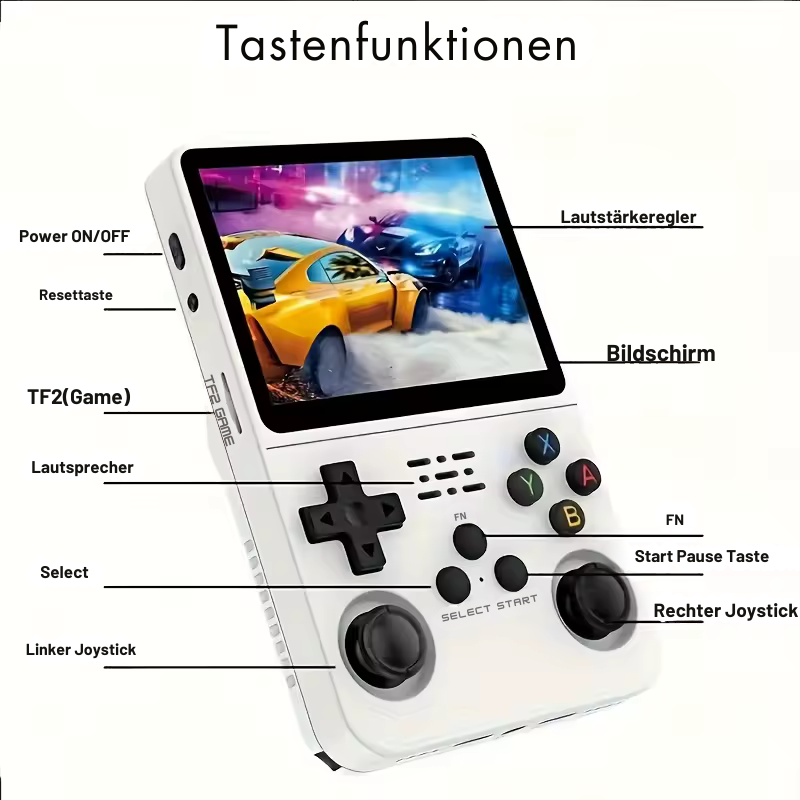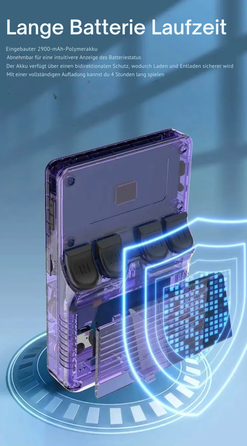 Was RetroGamer so besonders machtRetroGamer ist eine handliche Spielkonsole mit einem 3,5 Zoll IPS-Farbdisplay und einer gestochen scharfen Auflösung von 640×480 Pixel. Über 25.000 Spiele aus mehr als 20 klassischen Konsolen sind von Anfang an vorinstalliert und direkt spielbar, ohne komplizierte Installation oder Internetverbindung. Die Steuerkreuz- und Buttonbedienung erinnert an die guten alten Zeiten und sorgt für ein authentisches Gaming-Erlebnis. Der Akku hält bis zu 6 Stunden, damit du stundenlang Spaß hast, egal wo du bist. Außerdem kannst du deine Spielstände jederzeit speichern und später ohne Unterbrechung weitermachen. RetroGamer ist der perfekte Begleiter für alle, die auf Nostalgie stehen und klassische Games lieben.