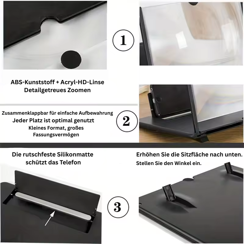 - 📱 Vergrösserer auf dein Smartphone legen